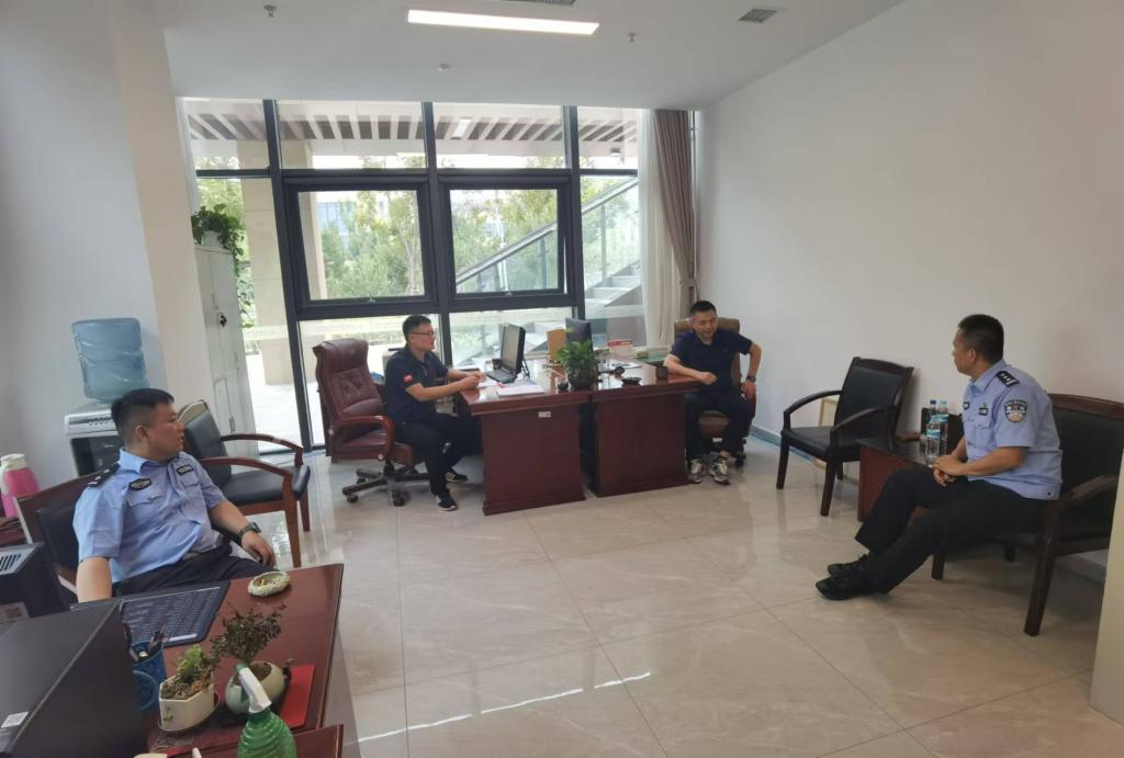 9月5日下午,济南市公安局长清分局开发区派出所指导员王向阳、民警蔡文国来kaiyun开云官方在线入口进行安全工作交流。