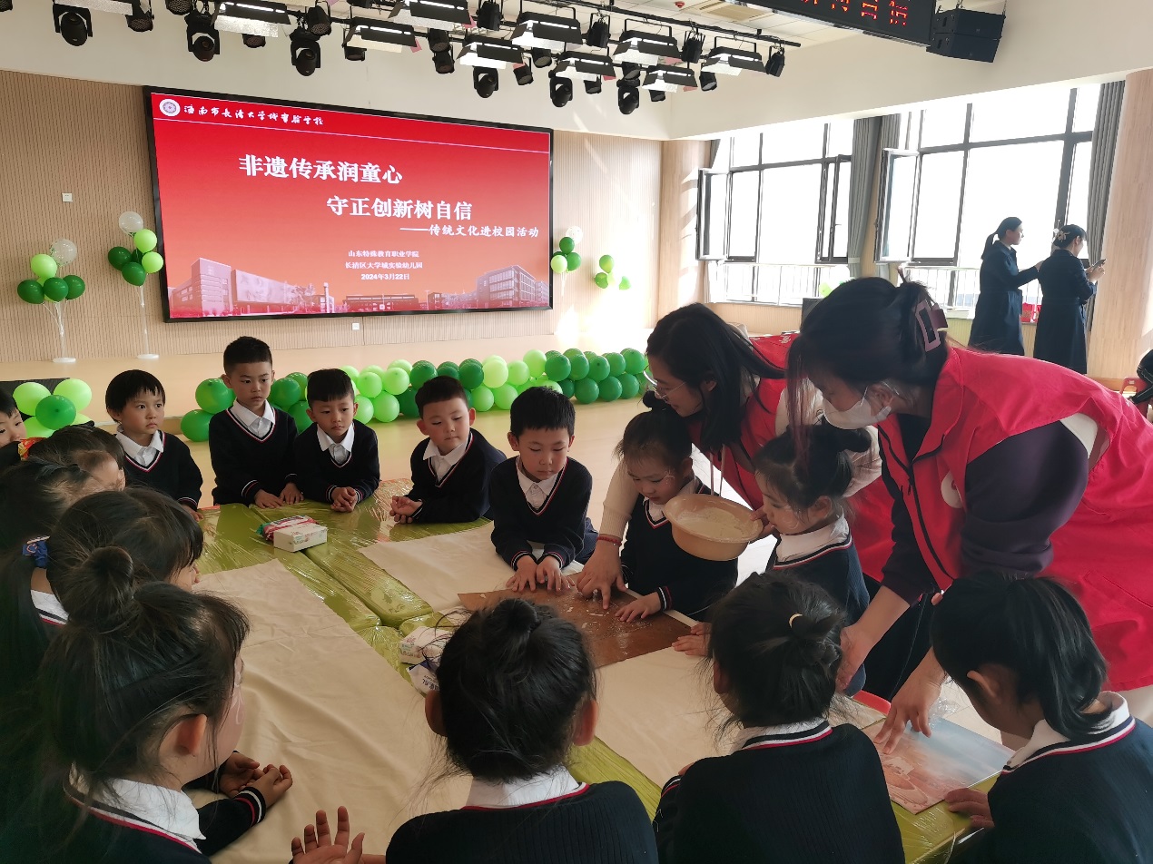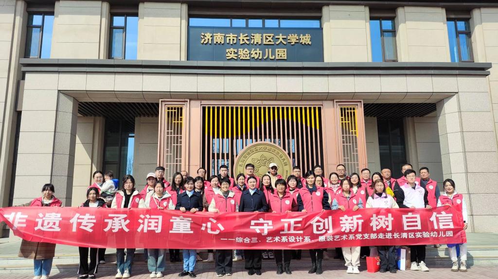 3月22日,学院综合三党支部、艺术设计系党支部、服装艺术系党支部全体党员走进济南市长清区大学城实验幼儿园,开展“非遗传承润童心守正创新树自信”志愿服务活动。
