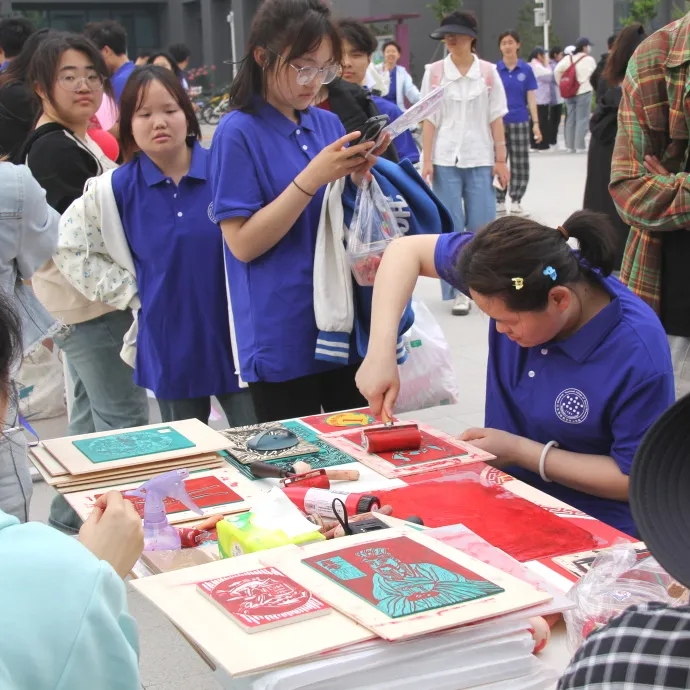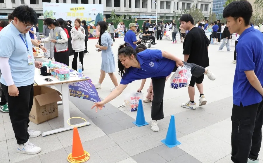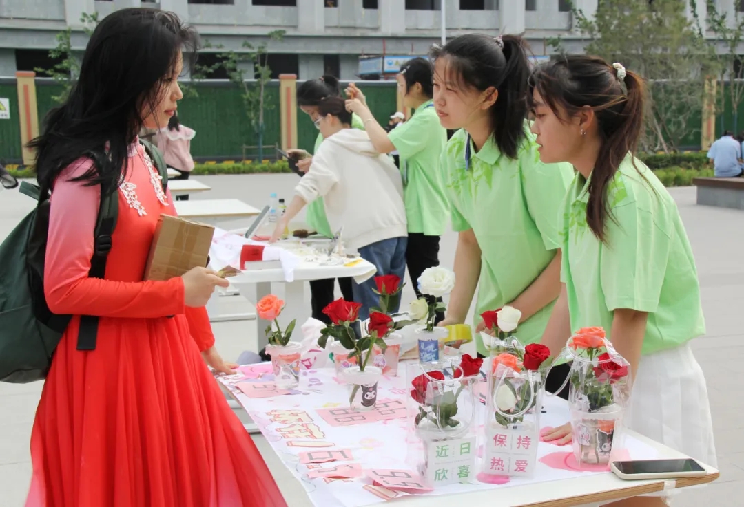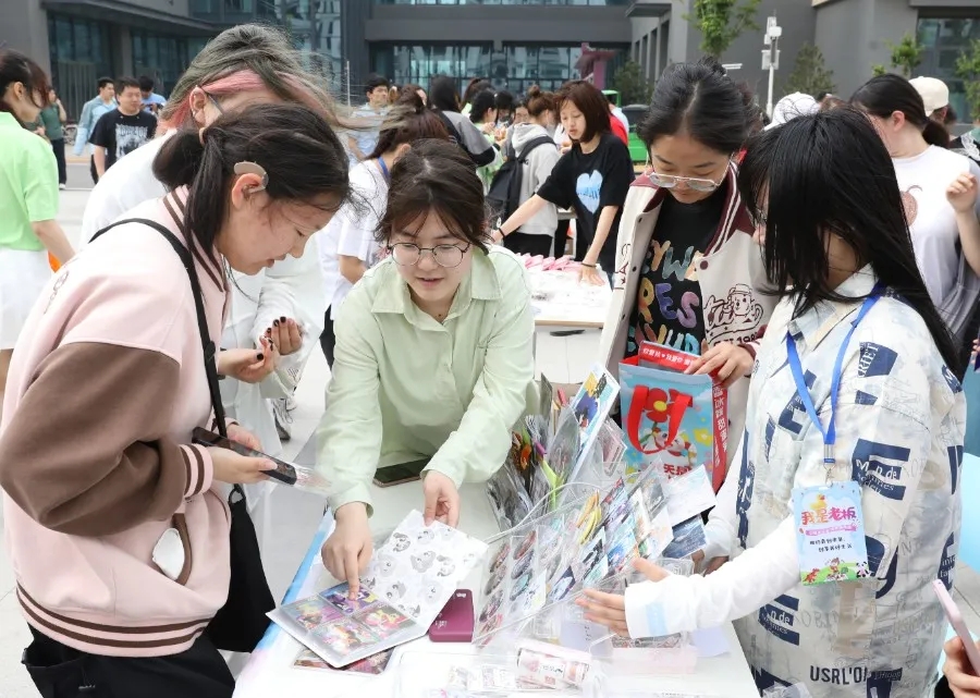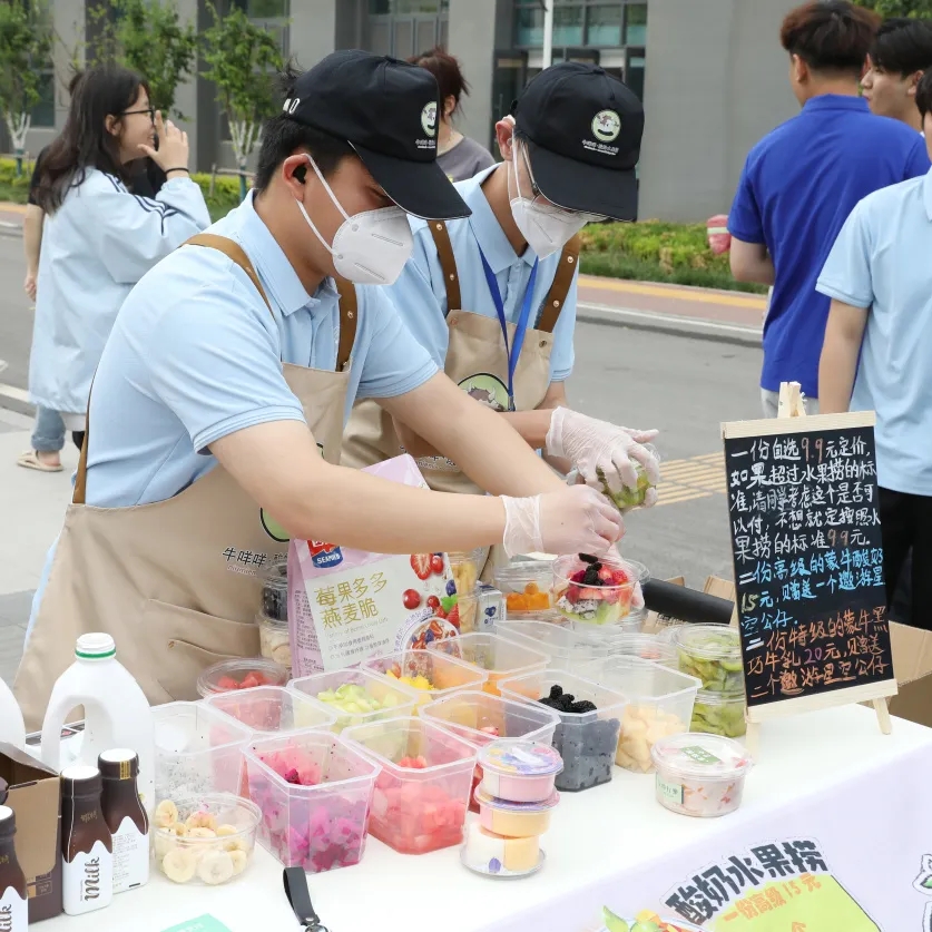 非遗文创、手工饰品、夏日美食、有奖竞赛、拍照摄影、美甲手串、鲜花玩偶、套圈抽奖……30多个摊位为大家奉上了好吃、好玩、好逛的春日盛宴。不一会儿,学院餐厅南侧的小广场上就围满了前来赶集的“顾客”,各位“小老板”拿出看家本领,使出浑身解数,忙得不亦乐乎。