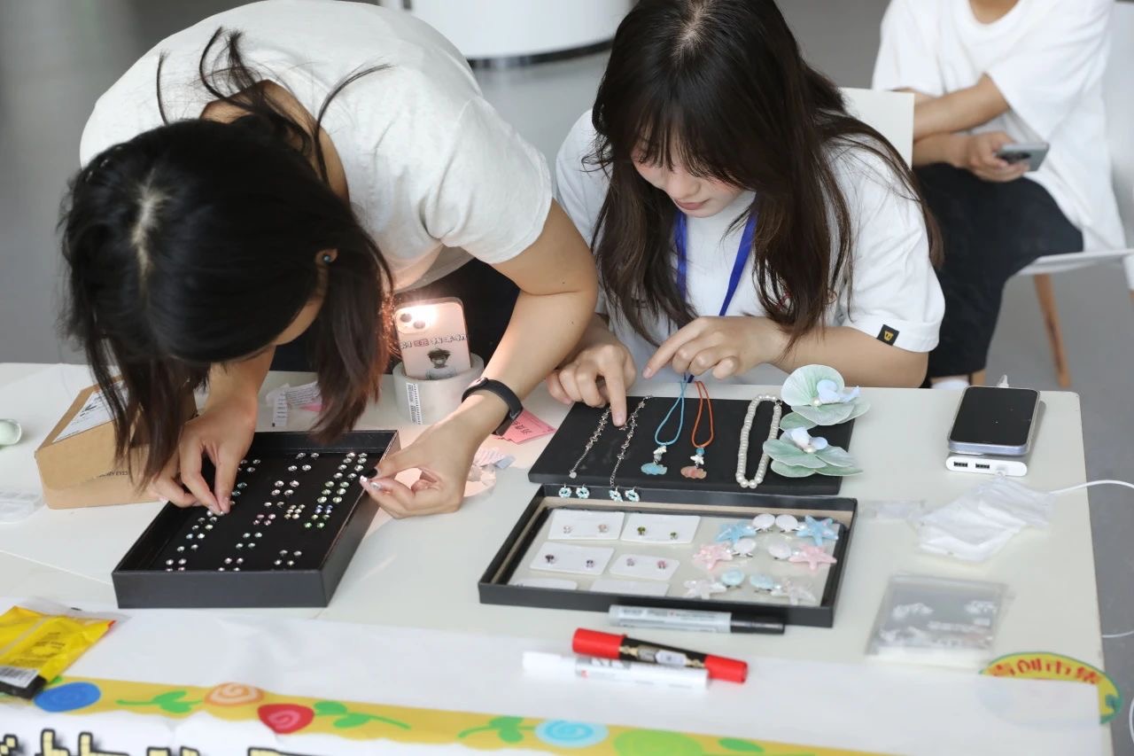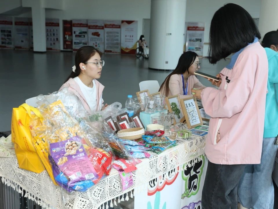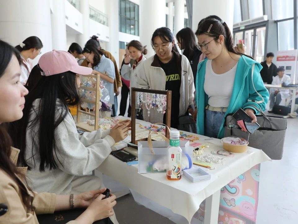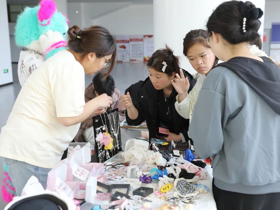 温润如玉的陶瓷手串、精巧别致的耳钉、创意DIY手作饰物,在年轻学子的腕间耳畔绽放艺术光华;二次元周边定格青春印记;Q弹解压的捏捏乐、萌态可掬的多肉盆栽、馥郁芬芳的鲜花绿植,吸引着往来学子驻足流连。看,领导们也来赶集了!