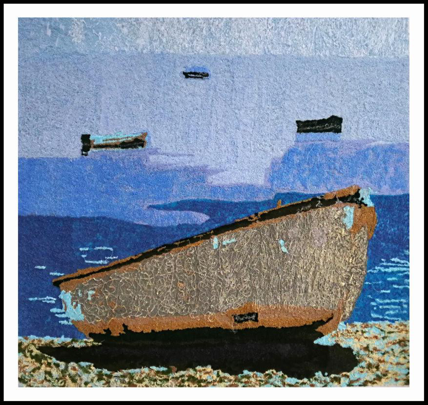 作品《时光》和《待到山花烂漫时》在天空、旧船等的表现上重点表现质感,或是体现明媚的春天或是表达沧桑的历史时间......