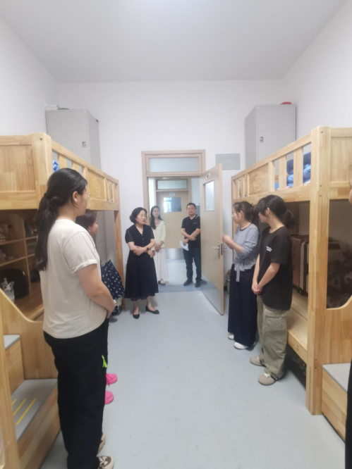 走访期间,院领导与新生亲切交谈,亲切地询问了新同学们来自哪里、是否适应学校环境、生活上有没有困难等。一句句朴实而真挚的问候,瞬间拉近了彼此的距离。面对初次远离家乡、踏上求学之路的新生,老师们侧耳倾听他们的困惑与期待,以自身经历为引,耐心解答问题,同时,老师们还勉励新生在大学这一关键成长阶段,树立 ”跟党走,强信念,学技能,促发展” 的成长目标,不负韶华,努力提升专业技能,全面发展,在校园这片沃土上绽放青春光彩