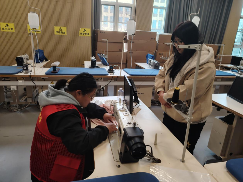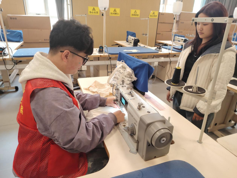 活动前期,团总支精心筹备,备好缝纫机、各色针线、剪刀、纽扣等工具,筛选专业技能扎实的学生志愿者组成服务小队,明确分工、细化流程,确保活动顺利开展。活动现场温馨有序,志愿者们化身“暖心裁缝”,耐心接待每一位前来求助的师生,细致询问缝补需求。