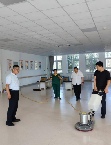 保洁人员对校园的各个角落进行了深度清洁。他们擦拭窗户、玻璃清洗窗帘、地面打蜡、绿植养护、冲洗道路,以整洁干净的面貌迎接新学期。