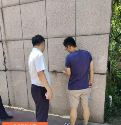暑假期间,后勤管理处组织有关专家对老校区的教学楼、办公楼、宿舍楼的石材幕墙等进行安全检查。