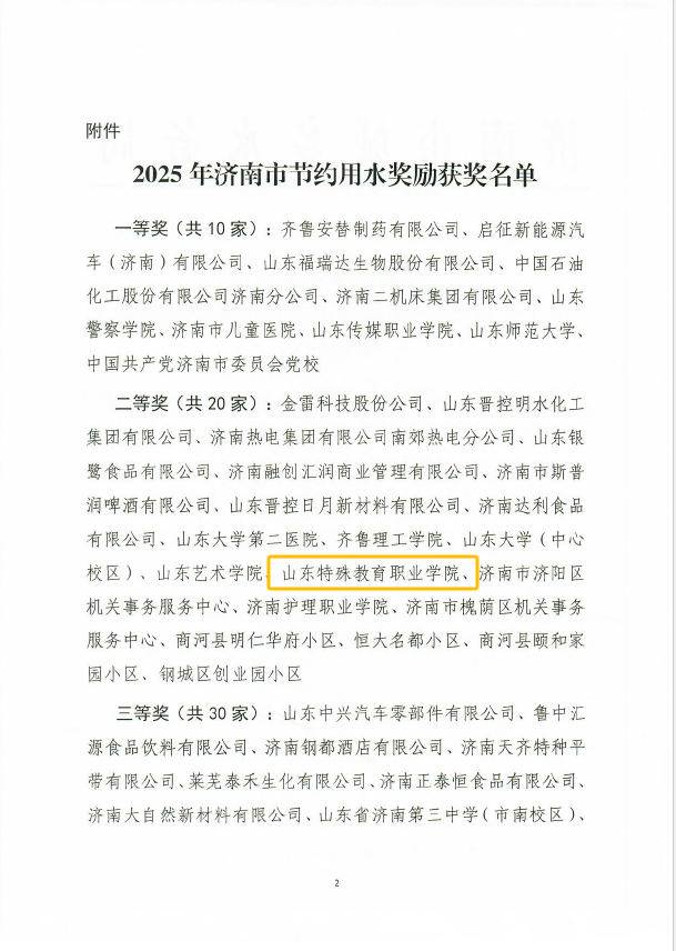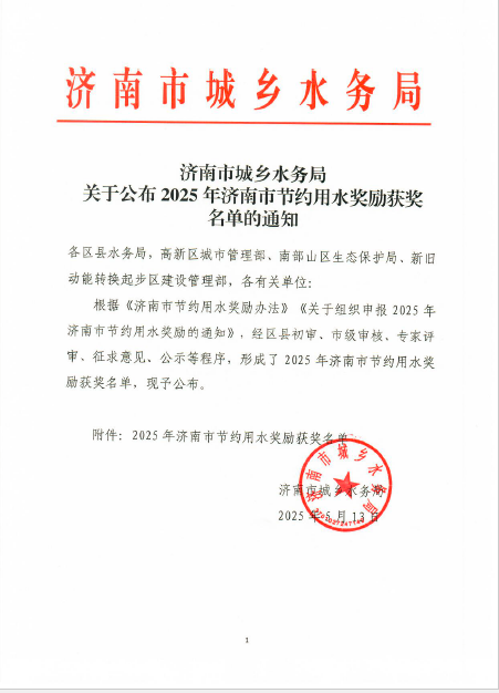 近日,济南市城乡水务局公布2025年度节水先进单位评选结果,学院成功获评2025年度济南市节约用水奖励单位。这一荣誉的取得,是学院长期以来高度重视水资源节约与合理利用、积极推进校园节水工作的有力见证。