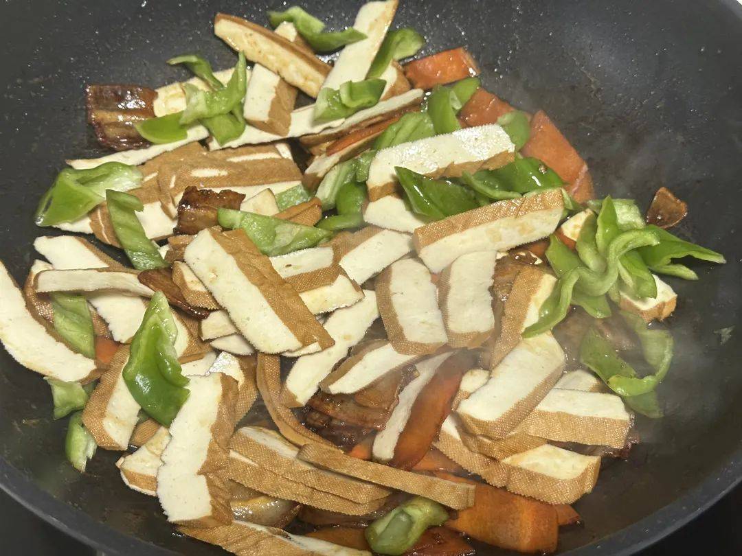 6、这个五花肉小炒青椒豆干真的超级好吃,食材也都是常见的食材,就这样简单搭配炒一盘真的既营养又美味!