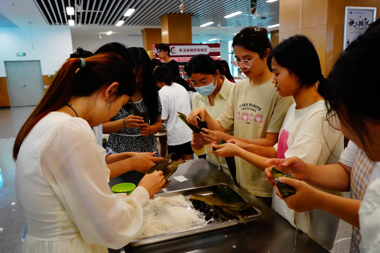 活动现场还设置了各种传统文化体验活动,如包粽子、佩香囊、编五彩绳等,同学们纷纷参与其中,体验传统文化的魅力。大家亲手包出了各种不同风格、不同口味的粽子,品尝着自己亲手制作的美食,体验到了浓厚的民俗文化氛围。