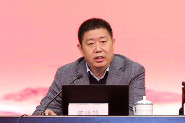 管洪锋作了题为《认清形势,明晰定位,多措并举,真抓实干坚定推进学院高质量发展》的讲话,全面分析了教育改革发展的外部环境和宏观政策环境,并围绕学院建设发展目标,结合当前职业教育发展的形式,就学院建设发展指出了方向,提出了策略,给出了建议和举措。