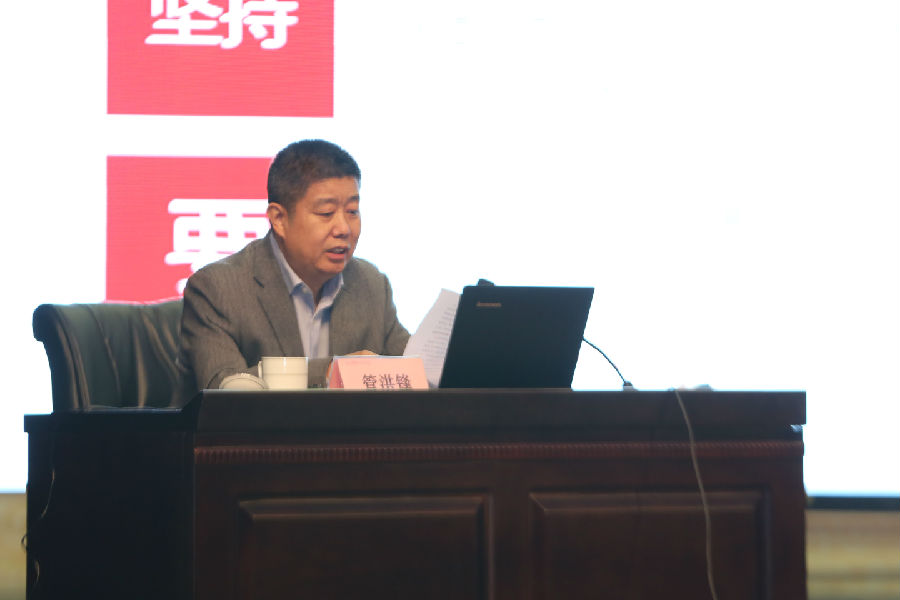 管洪锋指出,“十四五”时期是我国全面建成小康社会、实现第一个百年奋斗目标之后,乘势而上开启全面建设社会主义现代化国家新征程、向第二个百年奋斗目标进军的第一个五年,在我国发展进程中具有里程碑意义。《建议》着眼“两个一百年”奋斗目标有机衔接、接续推进、把握全面建设社会主义现代化国家的目标要求,提出了到2035年基本实现社会主义现代化的远景目标,明确了“十四五”时期经济社会发展的指导思想、主要目标和重点任务,提出了一系列重大举措,为今后一个时期我国发展指明了方向、提供了遵循。我们要以习总书记在大会上讲话精神为总遵循,从历史和现实、理论和实践的角度全面把握新发展阶段,坚持用全面、辩证、长远的眼光看问题,增强机遇意识、风险意识,准确识变、科学应变、主动求变,勇于开顶风船,善于化危为机,为全面建设社会主义现代化国家开好局、起好步。