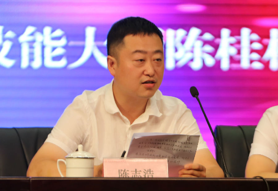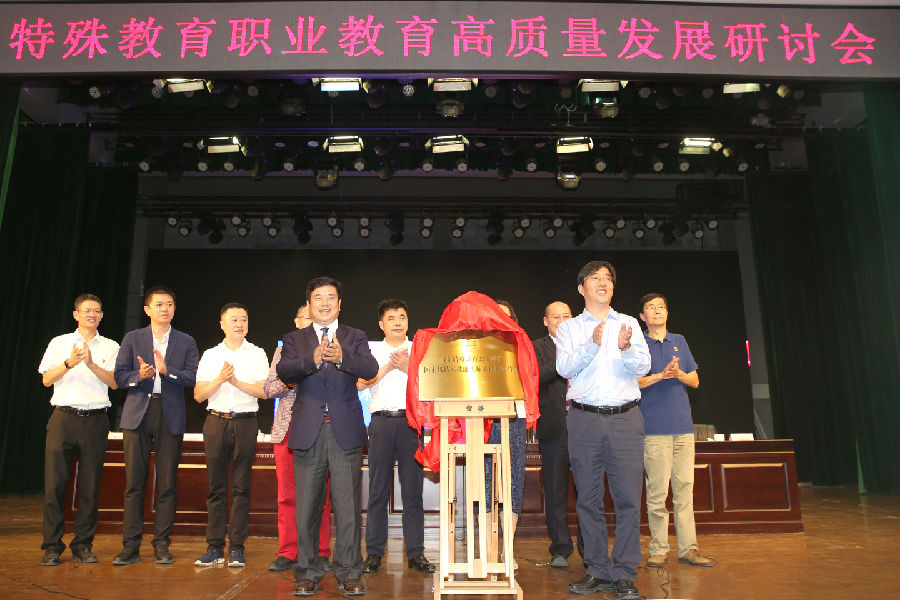 中华职业教育社党组书记、总干事方乃纯与山东省残疾人联合会副理事长黄庆峰为“kaiyun开云官方在线入口国家技术技能大师陈桂林工作室”揭牌。