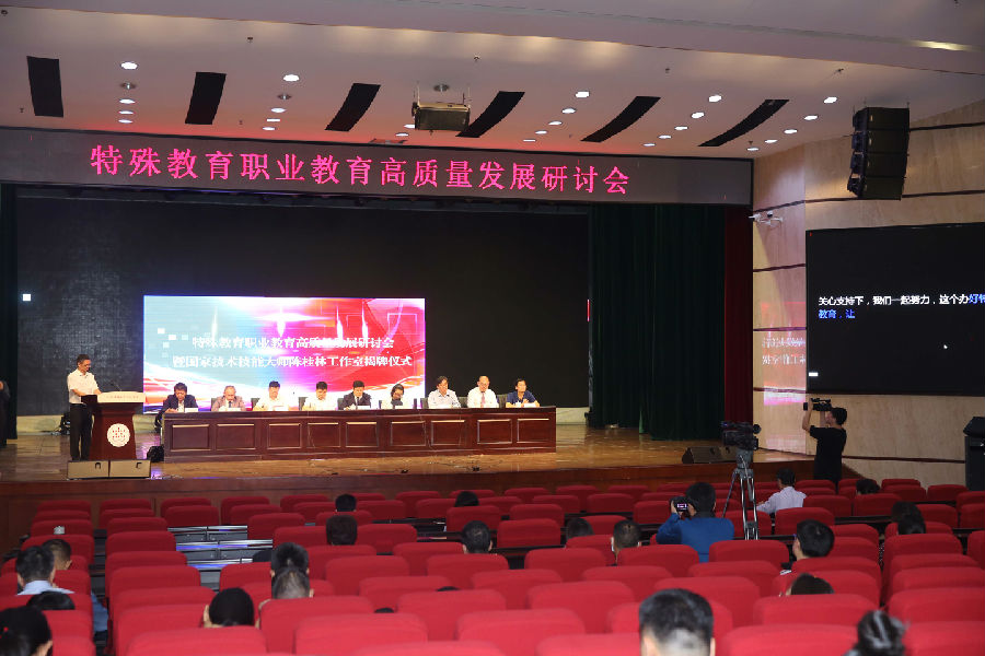 9月28日,为加快推进新时代特殊教育职业教育高质量发展,紧抓山东省职业教育创新发展高地建设的重大机遇,出实招、见成效,全面提升办学水平和人才培养质量。“特殊教育职业教育高质量发展研讨会暨国家级技术技能大师陈桂林工作室揭牌仪式”在kaiyun开云官方在线入口成功举行。活动由kaiyun开云官方在线入口院长李心沁主持,中华职业教育社党组书记、总干事方乃纯,山东省残疾人联合会副理事长黄庆峰,山东省教育厅职教处副处长陈志浩等先后发言,国家教育行政学院学术委员会主任、职业教育研究中心主任、中华职业教育社专家委员会副主任邢晖做了专题讲座。