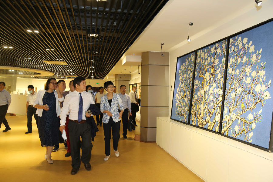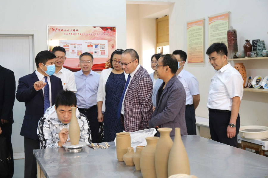 与会领导专家首先参观了学院服装综合实训车间、陶艺工作室、玉石雕刻工作室、学院师生30年校庆作品等,对残障学生高质量的作品深表震撼,对他们阳光向上的精神面貌赞叹不已,对学院的办学和人才培养给予充分肯定。