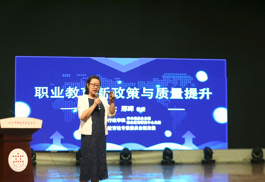 揭牌仪式后,邢晖主任围绕“职业教育新政策与质量提升”做了专题报告。邢晖主任详细解读了我国职业教育发展政策及发展之路,对如何更好地落实好国家职业教育新政策,推动实现高质量提升提出了方案,为新形势下特殊高职院校高水平高质量建设发展提供了思路和办法。