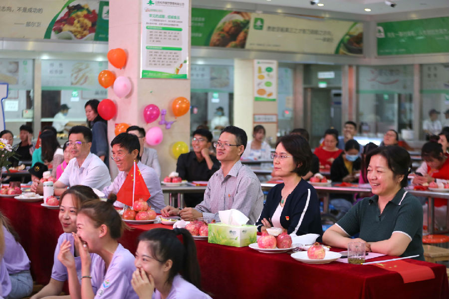 学院党委班子成员出席活动陪学生们一同过节。院长李心沁在致辞中表示,鉴于疫情防控的需要,师生要在校园里度过国庆中秋假期,为了让全体师生感受到特教大家庭的温暖,特举办本次活动,希望以此充分展现特教人团结友爱、文明尚礼的优良传统,让书香与歌声交织,学习和快乐并行,营造积极向上,欢乐祥和的节日氛围,用我们的诗篇和歌声来赞美、祝福祖国母亲。