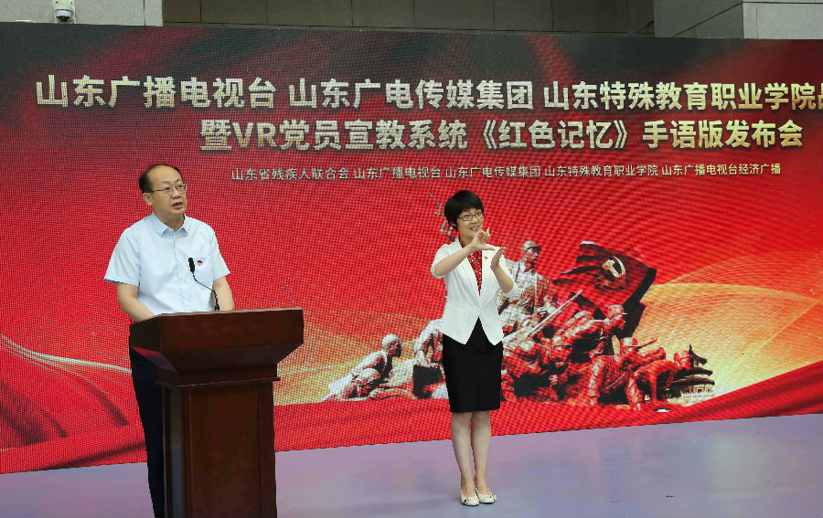 山东广播电视台党委副书记张卫华在发布会致辞中表示,山东广播电视台、山东广电传媒集团将鼎力支持双方的合作,未来双方的合作空间将更加广阔;张卫华指出,VR党员宣教系统《红色记忆》由山东广电视觉科技以当下最前沿、最时尚的VR互动影像作为表现形式,与kaiyun开云官方在线入口联合升级制作的《红色记忆》手语版更具开创意义,为听障人士带来直观、便捷、全新的观看体验,从而帮助听障人士更加充分的融入到党建工作中,实现了无缝覆盖宣教人群,全面展现爱国主义教育基地丰富而博大的精神内涵。