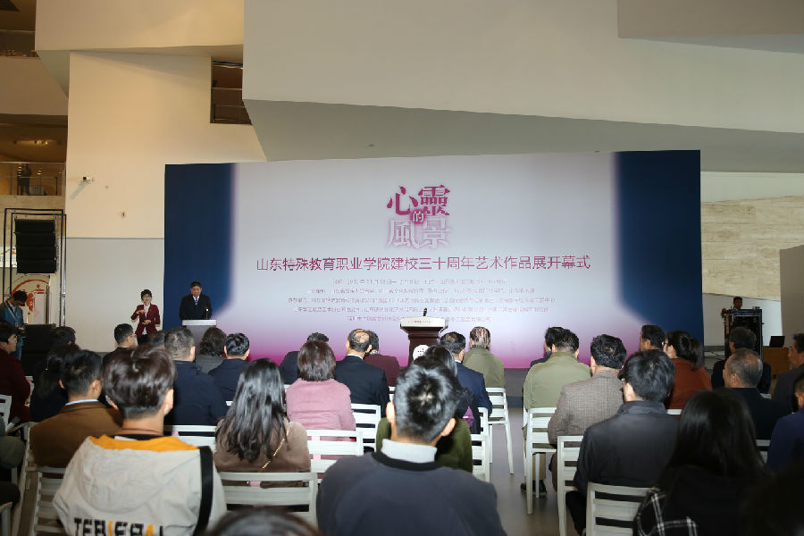 开幕式上,山东美术馆馆长、山东省美术家协会主席张望致辞,山东省美术家协会原主席、山东艺术学院原副院长杨松林宣读中国美术家协会主席、中央美术学院院长范迪安发来的贺信,山东省残疾人联合会理事长、党组书记邹斌芳在开幕式上讲话并宣布展览开幕。开幕式由学院党委书记管洪锋主持。