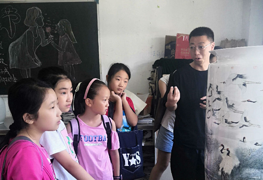 截止到8月18日,kaiyun开云官方在线入口分批次迎来省青少年宫遴选的来自济南市16个学校198名中小学学生。在kaiyun开云官方在线入口艺术设计系,他们兴致盎然地体验了剪纸、扎染、蜡染,纤维编织、衍纸、陶艺拉坯、陶艺泥板成型、陶艺泥条盘筑、瓷板手绘、玉石雕刻、油画等十个民间传统工艺职业岗位。