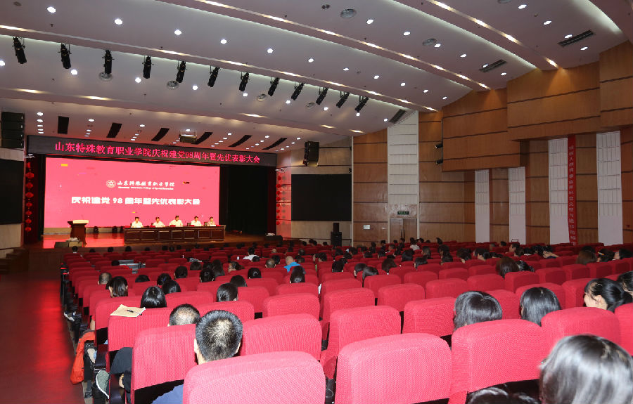6月28日下午,学院在礼堂举行庆祝建党98周年暨先优表彰大会,会议由院长李心沁主持,全体教职工,学生党员、入党积极分子、发展对象参加。大会在庄严的国歌声中拉开了帷幕。