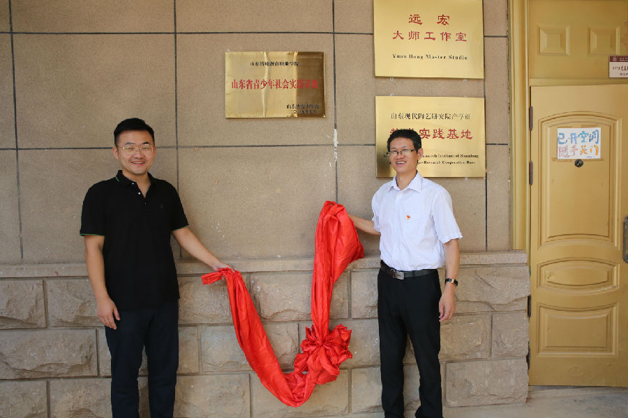 7月3日,山东省青少年宫活动部部长赵玥龙与院长李心沁在陶艺第一工作室共同为“山东省青少年社会实践基地”揭牌。