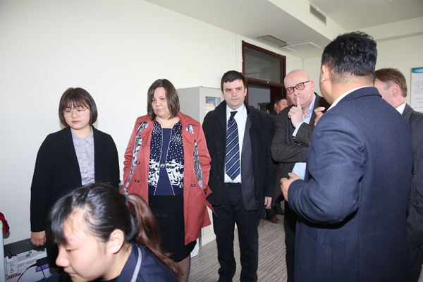 在参观过程中,Andrea女士与李心沁院长及各工作室的指导老师就专业课程设置、学生作品创作及学生就业情况等情况进行了交流,对学院良好的办学条件、优美的校园环境表示赞赏,对听障学生创作的艺术作品赞叹不已。此外,Andrea女士一行还特别在特殊教育系的心理健康教育工作室进行了教学观摩,对学院先进的教学设备和多样的教学手段给予了充分肯定。