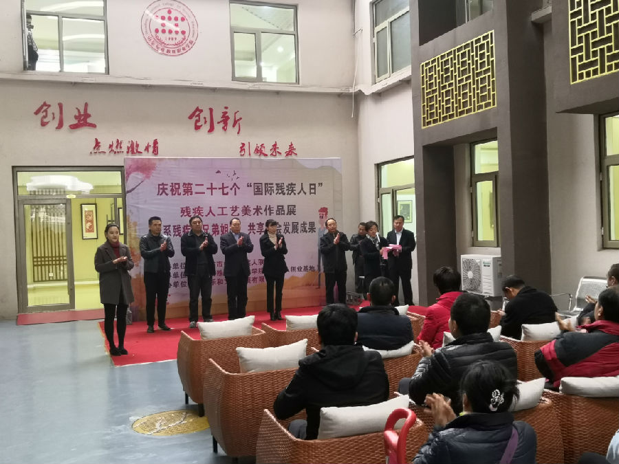 12月2日上午,在第27个国际残疾人日到来之际,学院和市中区残联在学院大学生创业孵化基地联合举办了“情系残疾人兄弟姐妹,共享社会改革发展成果”为主题的残疾人工艺美术作品展。学院副院长姜欣、市残联宣文处处长张敏、市中区残联党组书记理事长胡永福、区文联主席马兴园、区残联副理事长邓洪雁、逯鹏飞出席了作品展。