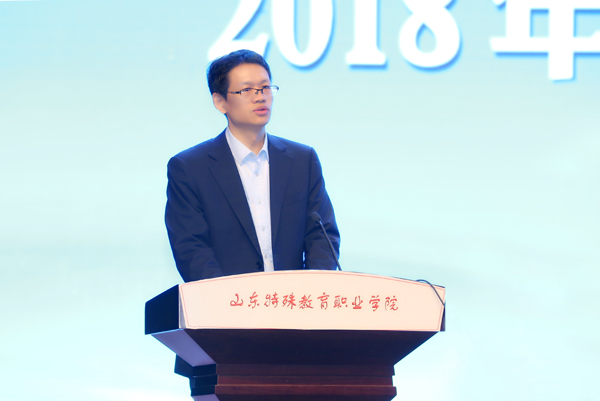 会上,省教育厅基教处孔玲科长以“当前我省特殊教育发展的形势与任务”为题作报告。结合山东省特殊教育、残疾人职业教育工作,她先后向大家解读了《残疾人教育条例》、全国教育大会精神、教育部等七部门印发的《第二期特殊教育提升计划(2017-2020年)》、山东省《第二期特殊教育提升计划(2018-2020年)》、《山东省教育厅贯彻落实全国教育大会精神实施基础教育“十大行动计划”的意见》等文件,带领大家从政策层面深入把握国家和省政府关于推进特殊教育工作的系列重要措施,并结合自身工作经验,就如何加快发展残疾人职业教育提出了“六个必须”:一是必须重视中等职业教育,二是必须整体规划科学布点,三是必须合理设置专业,四是必须打通招生入口,五是必须加强教育质量监控,六是必须配套就业服务。她表示,近年来,山东省认真贯彻落实党和国家关于推进特殊教育工作的系列方针政策,取得了诸多创新性、引领性的成果,但也面临着更加繁重的发展任务。她希望学院能抓住新的机遇迅速崛起,各市县特教院校能获得更好的发展,共同推进全省特殊教育工作再上新台阶,让残疾孩子与其他所有人一样,同在蓝天下,共同接受好的教育,共享改革发展成果。