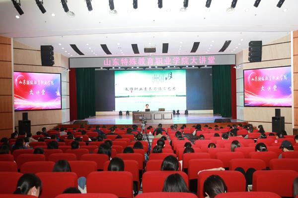 4月20日下午,学院邀请山东省演讲学会会长,原山东青年政治学院文化传播学院院长、党总支书记武传涛教授在学院礼堂作了题为《教师职业素养与语言艺术》的讲座。武教授是“特院大讲堂”名家讲堂本学期第1位主讲嘉宾。讲座由副院长姜欣主持,学院领导班子、副科级以上干部、全体教师及特殊教育系全体学生参加。