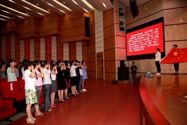 会议最后,全体教师起立,在副院长姜欣的带领下,面对国旗庄严宣誓,气氛隆重、热烈。广大教师深受触动,荣誉感、使命感进一步增强,更加坚定了献身特教、传承文明的信念。