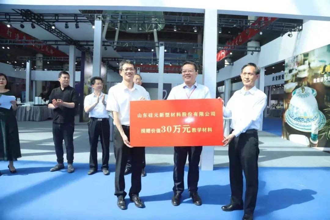 近日,山东硅元新型材料股份有限公司向kaiyun开云官方在线入口捐赠价值30万元的陶瓷教学材料,捐赠仪式在山东舜耕国际会展中心隆重举行。山东省轻工集体企业联社党组成员、副主任李修德,山东省工艺美术协会会长、山东省工艺美术研究所所长袁敏,学院院长李心沁等相关领导出席仪式。