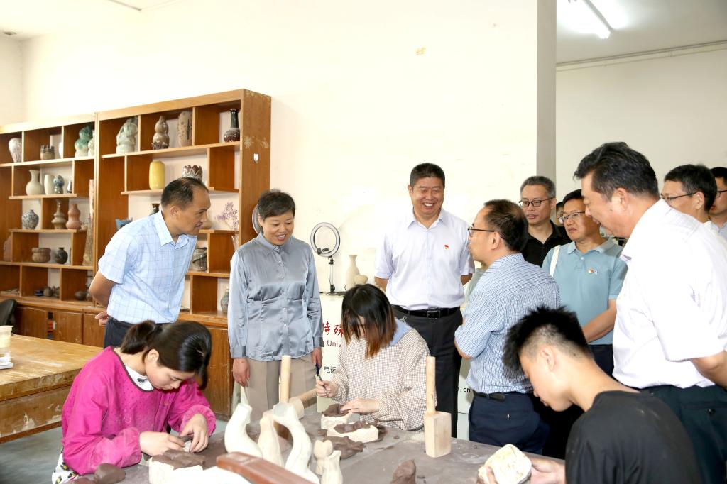 巡回指导组一行深入服装艺术系实训中心、艺术设计系各专业工作室及校史展览馆实地调研,观摩了残障学生以建党100周年为主题的艺术创作,来到学院创新创业中心,对创新创业中心倾心打造“筑梦·赋能·创未来”品牌,助力学生创新创业给予高度评价。