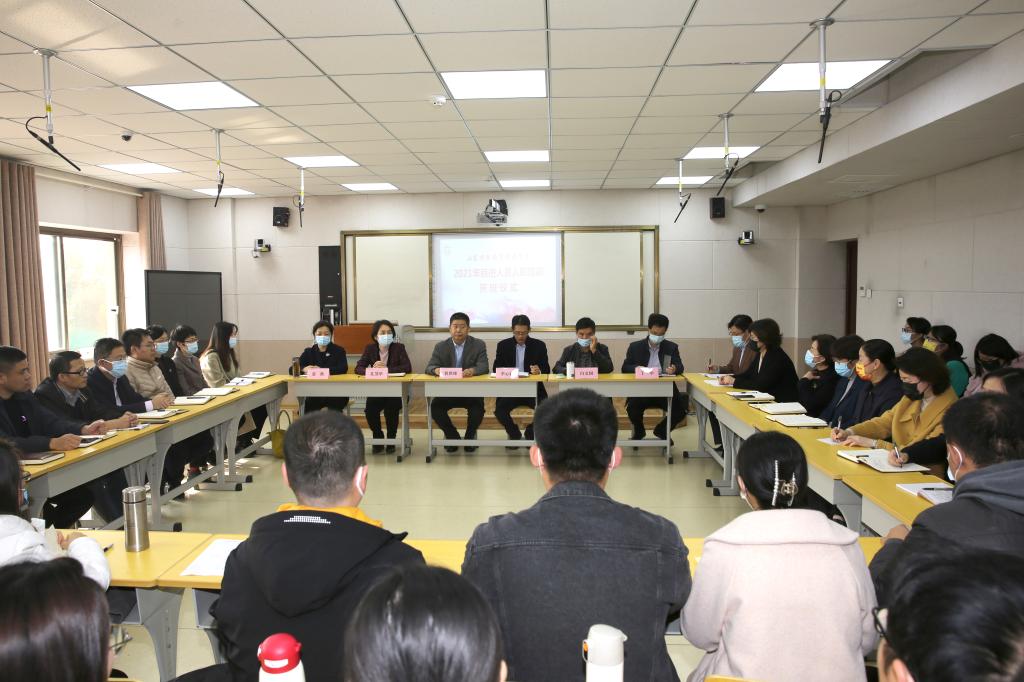 11月1日下午,学院在录播室举行了2021年新进人员入职培训开班仪式。学院领导班子成员、部门负责人、支部书记和15名新进人员及带教老师参加。党委书记管洪锋致辞,院长李心沁主持。