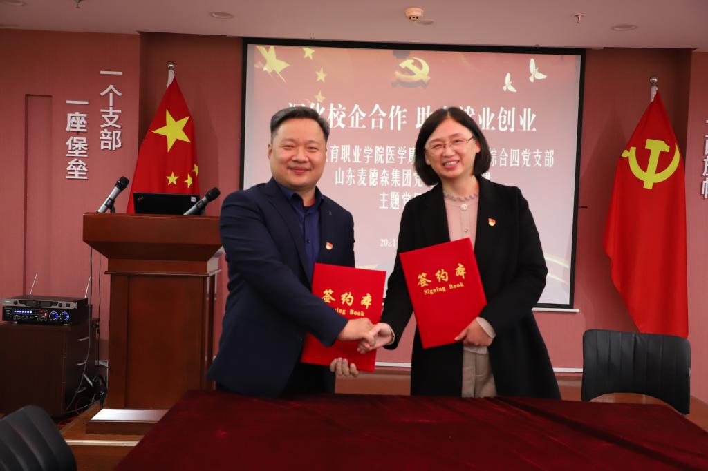 11月4日,学院综合四党支部、医学康复系党支部和山东麦德森集团党支部在山东麦德森集团共同开展以“深化校企合作助力就业创业”为主题的支部结对共建主题党日活动。学院副院长姜欣、山东麦德森集团党支部书记王勇分别带领支部党员参加了此次活动。