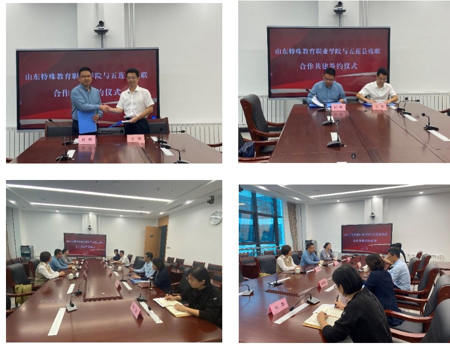 10月17日,学院与五莲县残联在学院图书办公综合楼举行合作共建协议签约仪式。五莲县残联理事长厉辉,学院院长李心沁、副院长丁华及教务处、艺术设计系负责人出席签约仪式。