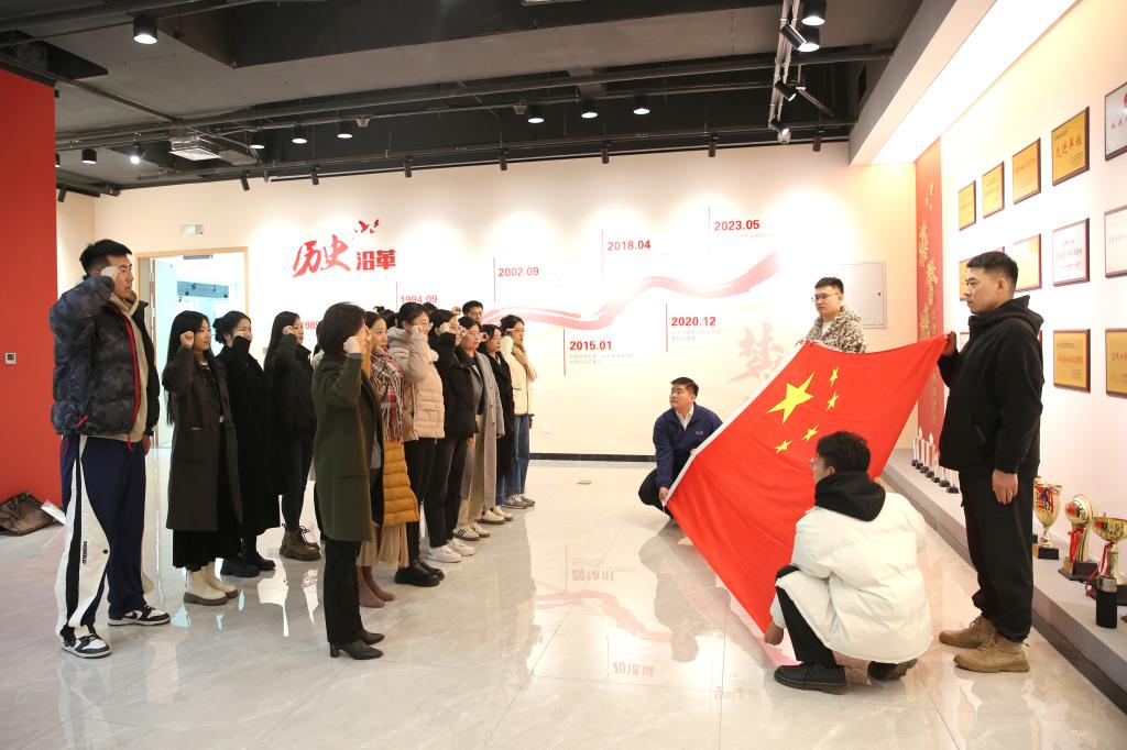 开班仪式后,新进人员参观了校史馆,教师们在鲜艳的五星红旗前进行了庄严宣誓。