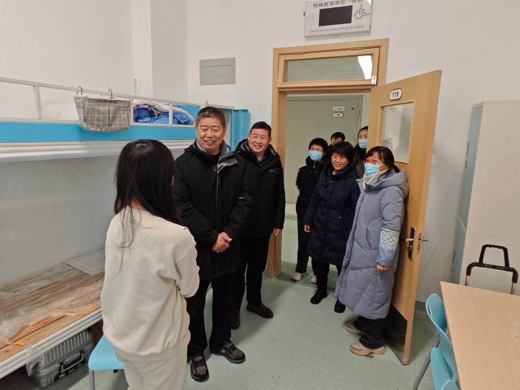 “家是哪里的?乘坐什么交通工具方式返校的”“觉得学院学习生活条件怎么样,还有哪些需要改善的地方”“寒假感受如何,对自己的专业方向有没有更加深刻的感受”……走访过程中,领导们走进宿舍与学生进行亲切沟通交流,详细了解了大家在寒假期间的学习进展、生活状况以及新学期的规划、心理状态等,叮嘱同学们注意用电安全、人身安全和财产安全,保持宿舍整洁,按时作息,营造舒适、和谐的宿舍环境,并鼓励同学们在新的学期中确立目标,鼓足干劲,以崭新的面貌迎接新学期的学习和生活。