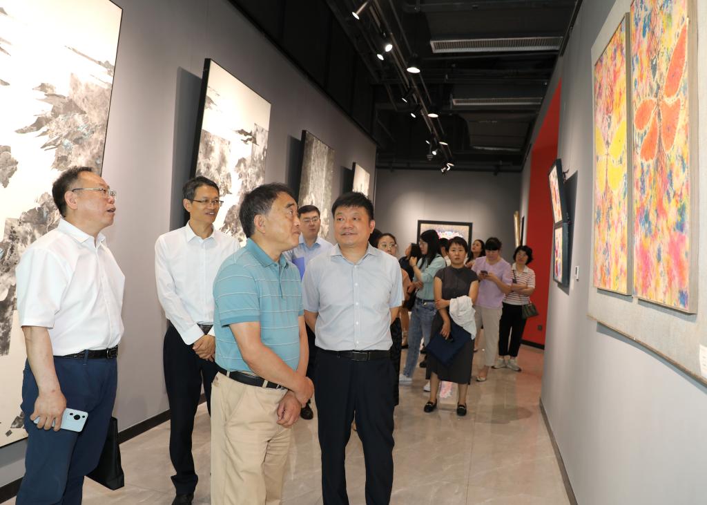 杨宗涛在图书馆听取学院基本办学情况和新校区规划设计及建设使用情况汇报,了解馆藏图书及数字化建设情况。在展览馆,欣赏了师生们创作的艺术作品,对艺术设计系和服装艺术系听力障碍学生扎实的专业技能、独特的艺术表现能力表示赞叹。