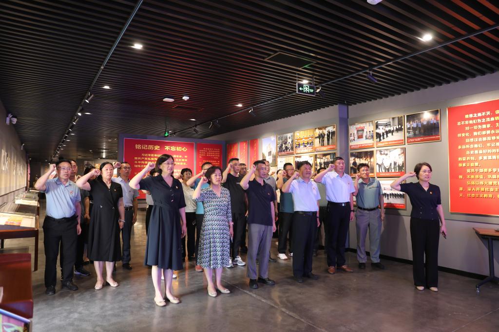 党员干部首先参观了“穿越时空的党课——四五党性教育基地主题展”,通过观看一幅幅珍贵的照片、听取一段段感人的故事,深入了解了山东早期党组织发展与斗争史,邓恩铭、刘谦初、郭隆真等“四五”烈士的生平经历以及为革命事业英勇就义的光辉事迹,接受了一次深刻的党性洗礼。参观最后,大家在“不忘初心、牢记使命”宣誓墙前面向党旗庄严宣誓,重温入党誓词,坚定初心使命。