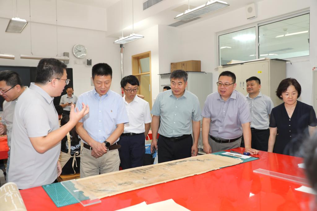8月1日,中国残联教就部副主任任占斌,国家文物局科教司教育处副处长党志刚一行到学院调研指导残疾人文物修复人才培养工作。省残联党组书记、理事长邹斌芳,党组成员、副理事长康永华,学院党委书记杨磊、院长李心沁参加调研。