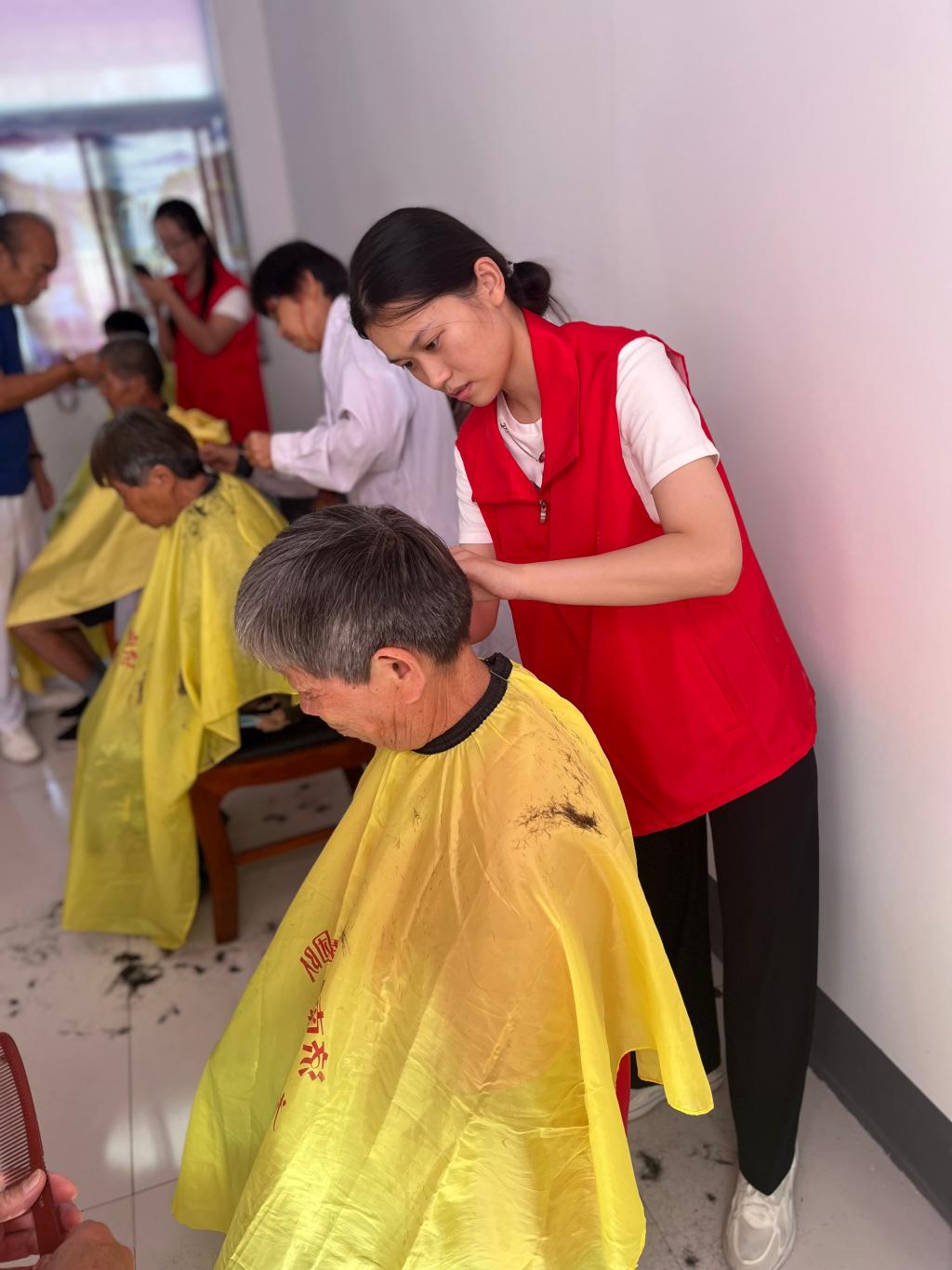 为切实解决老年人外出不便,落实“我为家乡做实事”的实践精神,团队成员自行联系济南义务理发团队志愿者为村里老年人开展公益剪发活动。同学们跟随师傅们耐心学习虚心请教,从谨慎落剪到轻车熟路,不一会儿爷爷奶奶们的满头银发便“焕然一新”。在理发的过程中,团队成员用家乡话与老人们聊天、说笑,其乐融融。一把剪刀,一个微笑,此次爱心义剪,不仅为行动不便的老人们解决了“头”等大事,更为他们带去了关心、关爱与关怀,营造了浓厚的敬老爱老氛围。