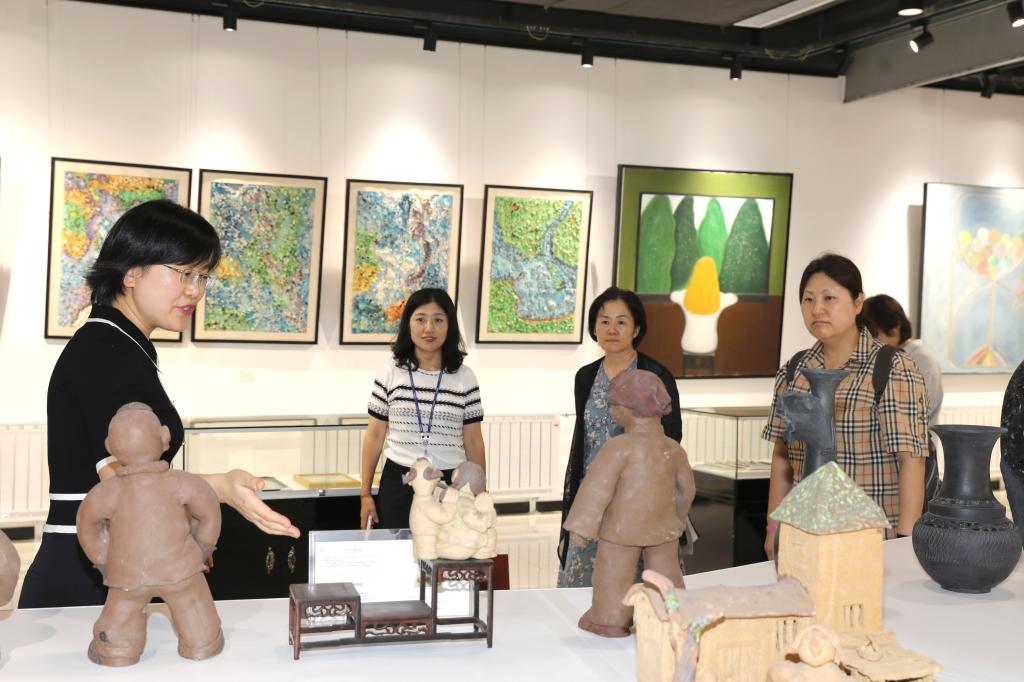 辛贤实一行首先参观了展览馆,对学院师生创作的艺术作品和艺术造诣给予高度评价。