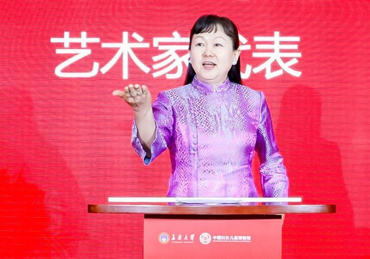 张莉作为特邀残障艺术家在开幕式上致辞,她表达了对此次展览圆满举办的诚挚祝贺和对残疾人文化艺术事业繁荣发展的美好祝愿。