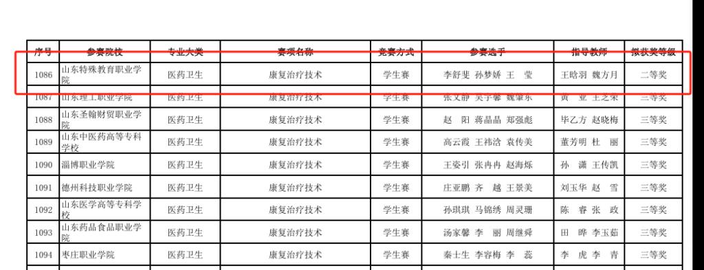 本次大赛由山东省教育厅、山东省工业和信息化厅、山东省人力资源和社会保障厅及山东省农业农村厅联合举办,吸引了来自全省28所高等职业院校的84名选手同台竞技。大赛以团队形式进行,包括理论知识测试与技能操作竞赛两部分,全面考查学生的理论知识掌握、医患沟通能力、人文关怀素养、临床综合分析判断能力以及常用康复治疗操作等综合素质。在为期两天的激烈比赛中,学院参赛队伍分工明确、默契配合,操作规范、灵活应变,充分展现了专业的职业素养和良好的团队协作精神。
