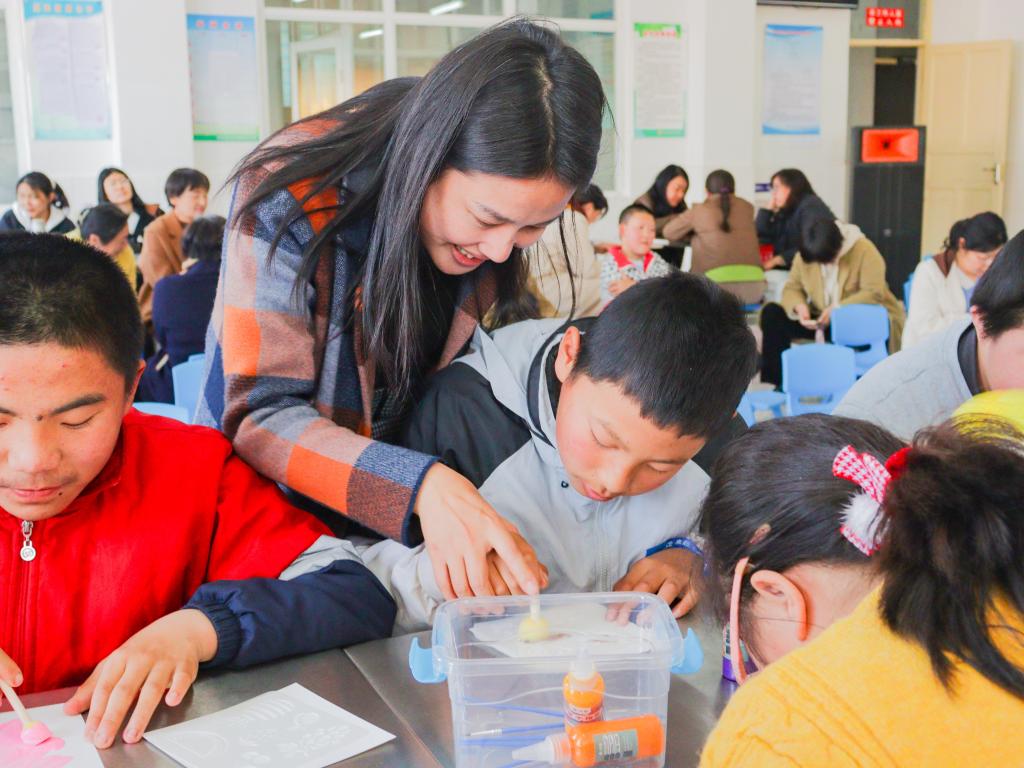 签约当天,特殊教育系师生志愿者与长清区特殊教育学校共同开展了“走进星星世界,用爱融化孤独”主题活动。活动中,志愿者为孩子们系上蓝色丝带,伴随着欢快的《幸福拍手歌》,带领孩子们通过拍手、跺脚、拍肩等动作感受音乐的节奏与律动。与孩子们共绘一幅画,体验创作的乐趣,以实际行动落实对特殊儿童的关心与关爱。