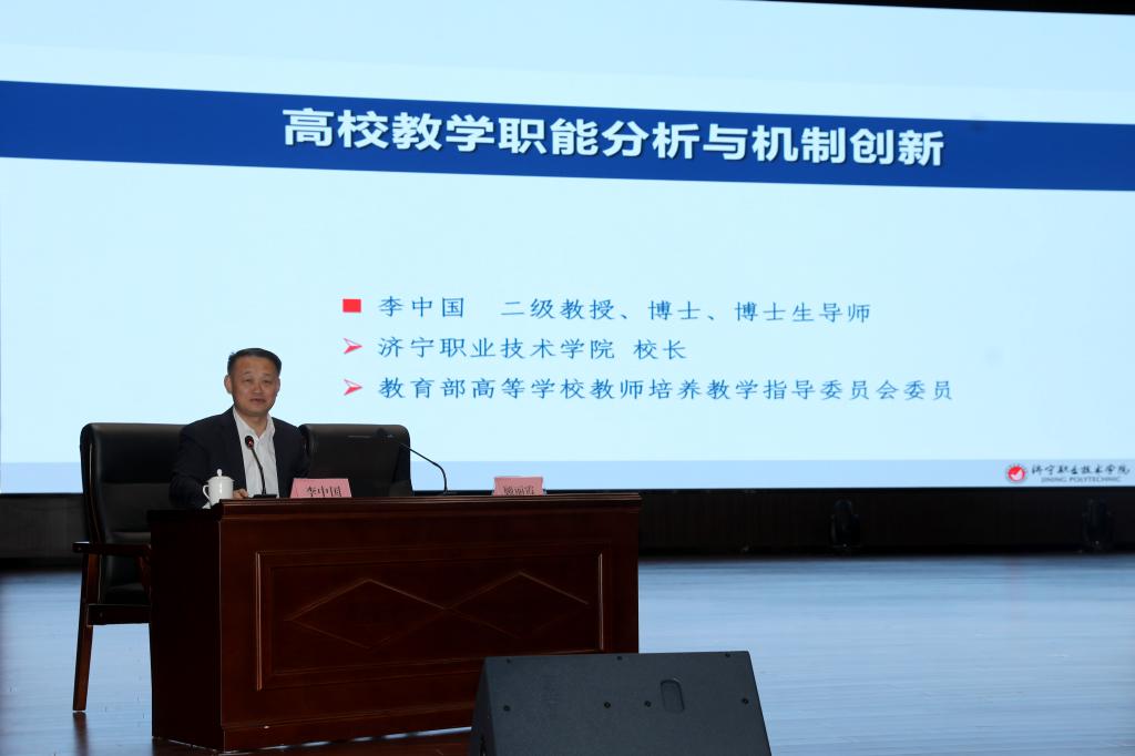会议特邀教育部高等学校教师培养教学指导委员会委员、济宁职业技术学院院长李中国作《高校教学职能分析与机制创新》专题讲座。李中国聚焦新时代高等教育发展核心命题,从学校职能的根本、学校运行的主线、学生中心的实现三个方面分析高校的教学职能,并以济宁职业学院为例,通过详实数据和典型案例,从建设高水平师资、优化专业设置、打造精品课程、开发多元教材、加强赛项引领、深化产教融合六个方面,深入分析如何创新教学机制,为学院破解教学改革难点、构建高质量发展体系提供了行动范式。