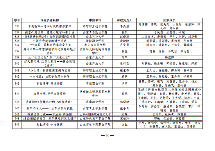 据悉,本次入选的课程资源将通过“山东省全民终身教育公共服务平台”“山东终身学习在线”“山东老年学习在线”等平台向社会开放共享。