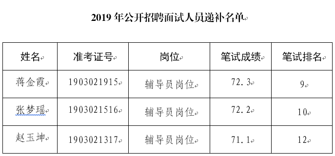 根据省委组织部、省人力资源和社会保障厅《关于2019年省属事业单位公开招聘工作人员有关问题的通知》(鲁人社发〔2018〕66号)规定,“截至面试之日前第3天的17时,面试人选仍未向招聘单位提交有关材料的,视为放弃。经审查不具备应聘条件的,取消面试资格。因放弃或取消资格造成的空缺,按笔试成绩依次递补”,现将kaiyun开云官方在线入口2019年公开招聘面试人员递补名单予以公布。