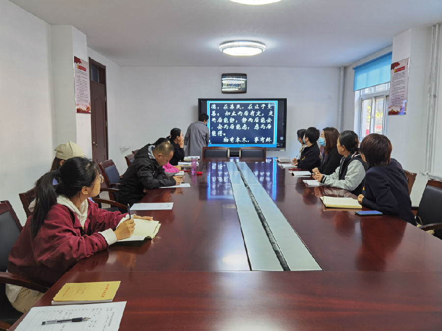 活动中,师生共读儒家经典《大学》,感悟传统文化经典的深刻内涵。与会师生齐声诵读了儒家经典《大学》,集体观看名家解读《大学》视频讲座,并结合自己的生活、学习、工作体验进行了热情的讨论,在广泛深入的讨论中,品味中华经典,修养德蕴之人。