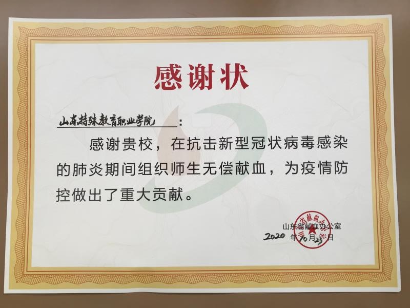 10月23日,学生工作处组织学生进行了“热血战疫,用爱心为生命加油”的无偿献血活动。此次活动共有60余名同学成功献血,累计献血达19600毫升,省血液办公室为学院发来感谢状。