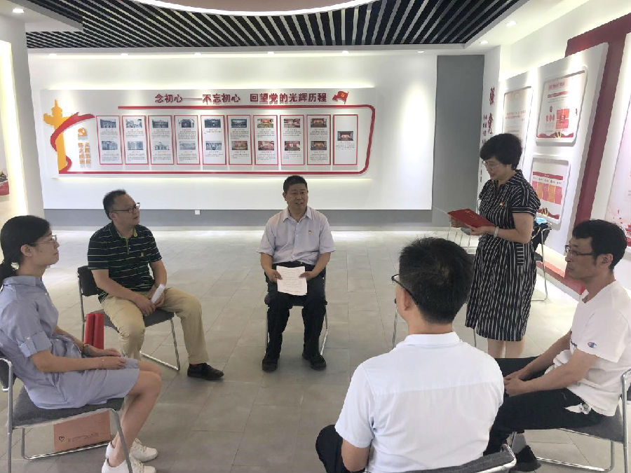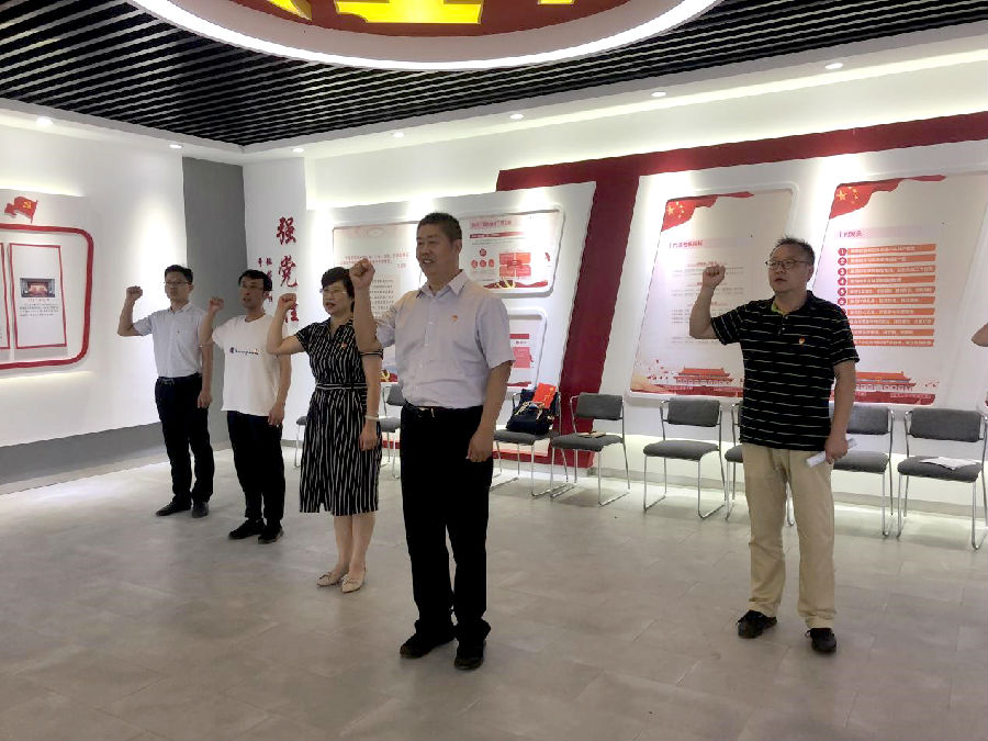 全体党员在党旗下重温入党誓词,忆入党初心、立为民为党担当之志,坚定了走在前列、出色完成各项工作任务的信心和决心。(组织人事处党支部)